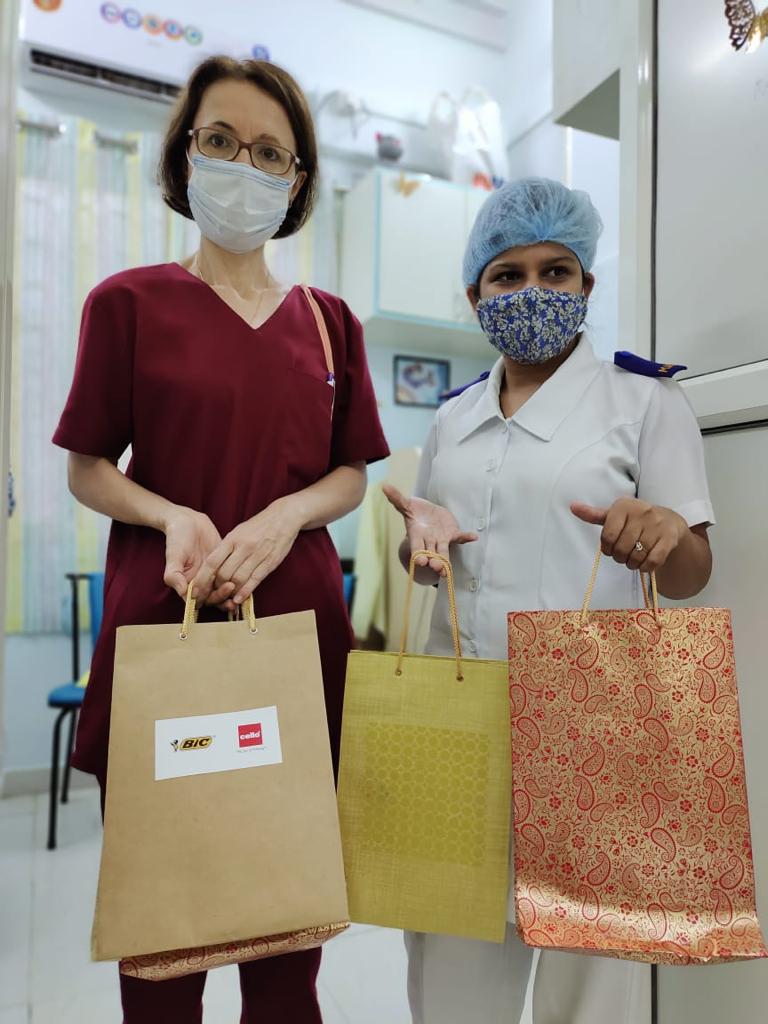 Nos plus sincères remerciements à toute la communauté scolaire, au groupe Bombay Accueil et à la société BIC qui ont fait don de nombreux sacs. Tous ensemble, nous avons contribué à offrir un petit moment de bonheur aux enfants malades.